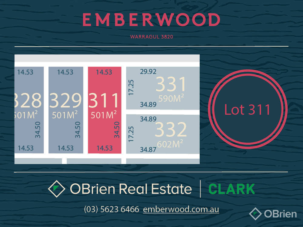 Stage 11 Emberwood Estate Lot 311 Experience the perfect blend of convenience and opportunity in Emberwood Estate, Warragul. This meticulously prepared land is fenced, benched, and retained where required, offers a seamless foundation for your dream home. Enjoy the proximity to schools, parks, and the vibrant Warragul CBD, providing a convenient and fulfilling lifestyle. Whether you're seeking a great investment or envisioning your dream home, this is the ideal opportunity. Don't miss the chance to secure your slice of Emberwood Estate.